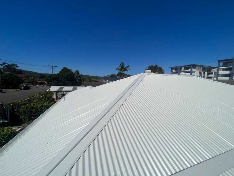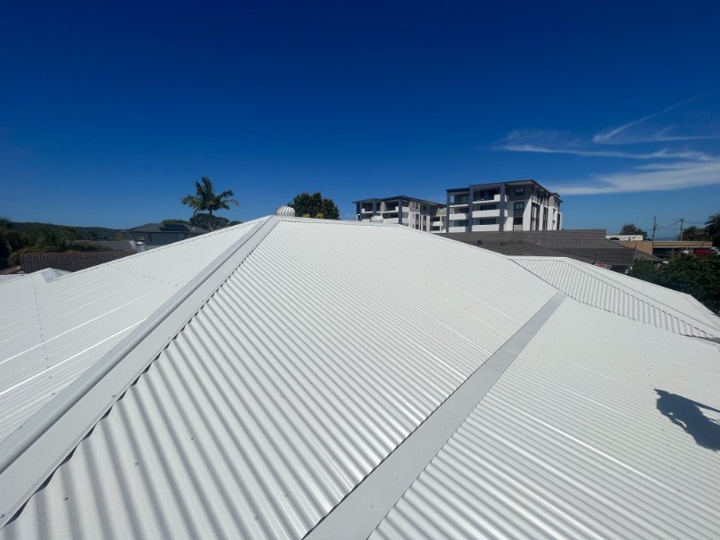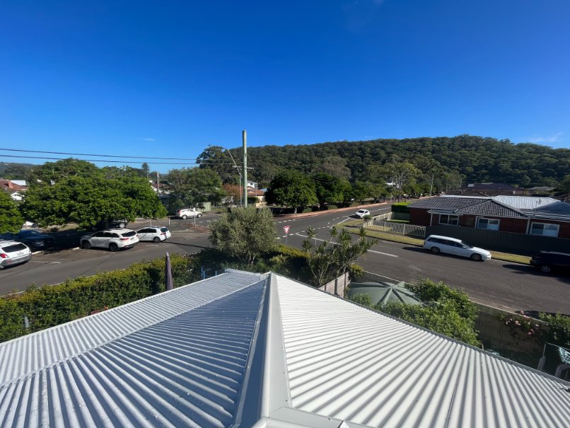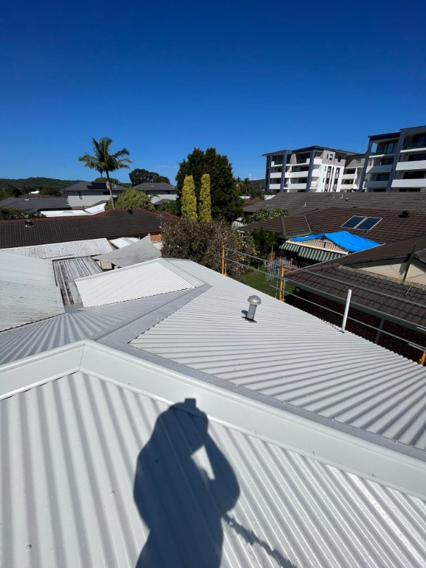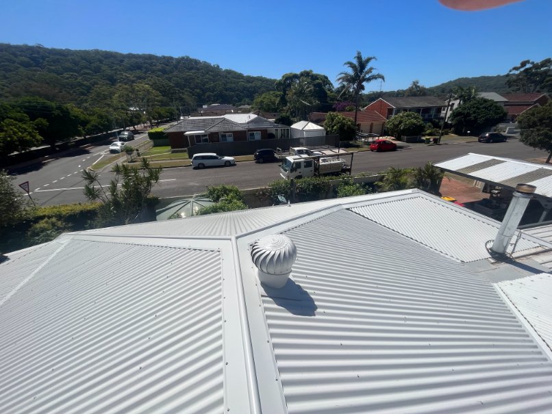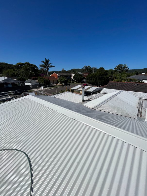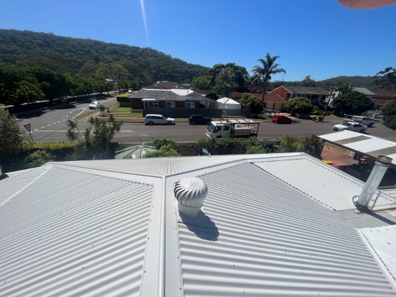 Photos of our re-roof Project completed In Ettalong. Removal of existing tile roof, gutters and fascia. Installation of new Colorbond Steel Custom orb roof, new 150mm half round guttering and new metal fascia cover. Colour- Surfmist.