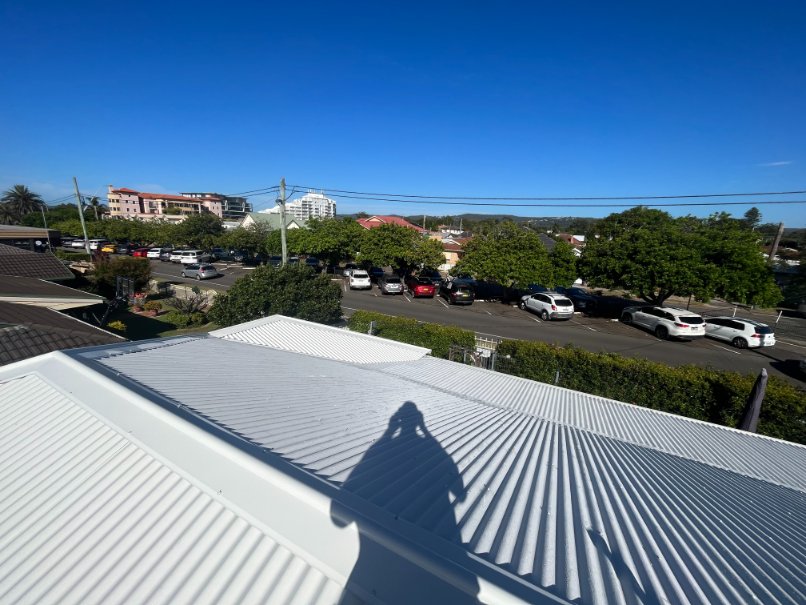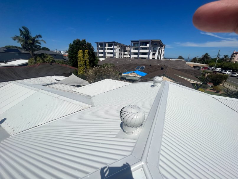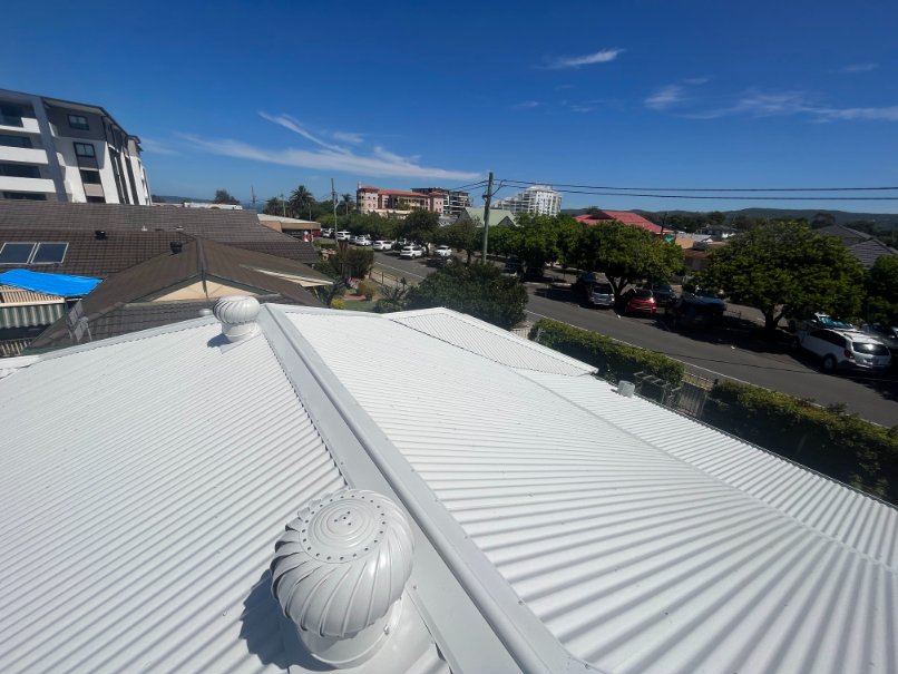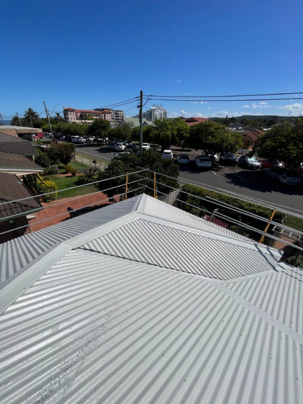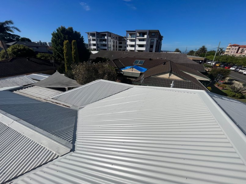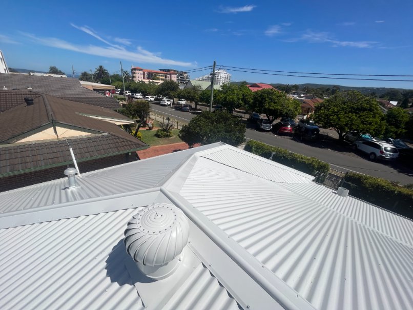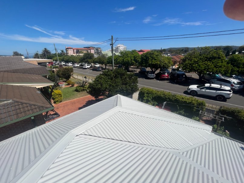 Photos of our re-roof Project completed In Ettalong. Removal of existing tile roof, gutters and fascia. Installation of new Colorbond Steel Custom orb roof, new 150mm half round guttering and new metal fascia cover. Colour- Surfmist.